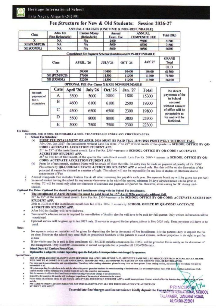 FEE STRUCTURE TALA NAGARI